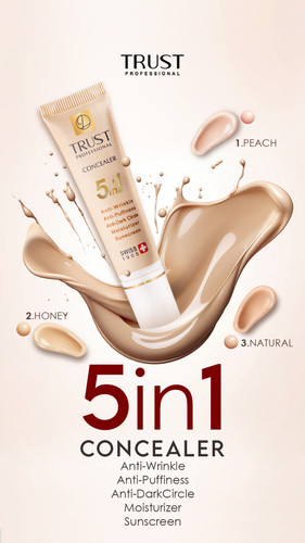 محصولات آرایش صورت تراست شامل سی‌سی کرم، بی‌بی کرم، دی‌دی کرم و کانسیلر هستند که با فرمولاسیون سبک، قابل تنفس و بدون ایجاد سنگینی روی پوست طراحی شده‌اند.