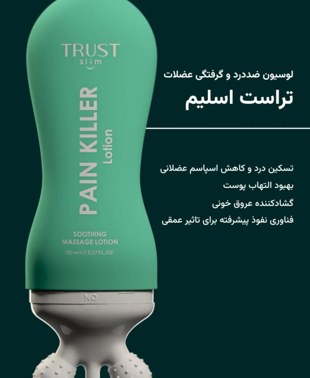 لوسیون ضد درد تراست اسلیم با فرمولاسیونی هدفمند، به کاهش اسپاسم عضلانی و آرامسازی عضلات کمک میکند. تسکین درد و کاهش گرفتگیهای عضلانی کمک به بهبود التهاب پوست گشادکننده عروق خونی و افزایش گردش موضعی بهرهمند از فناوری نفوذ پیشرفته برای اثرگذاری عمقی و سریع.