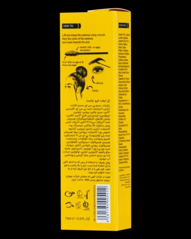 روش مصرف: با استفاده از برس که به اندازه کافی به ژل آغشته شده است، ابروی را بالا بکشید و فرم دهید. فرم دهی را از تاج ابرو شروع کرده و به سمت انتهای ابرو بروید.