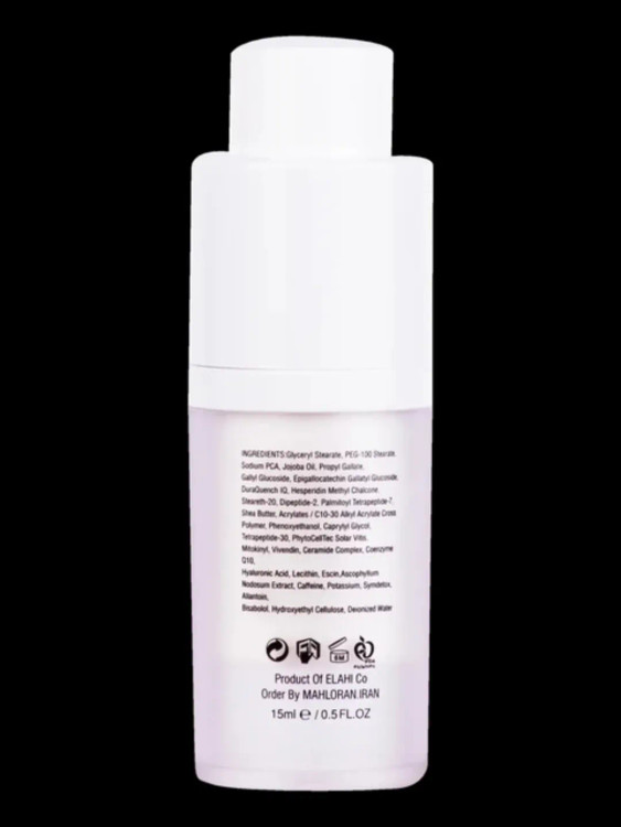 برطرف کننده تیرگی ناحیه چشم و بهبود گودی زیر چشم با آبرسانی و بهبود گردش مواد مغذی در پوست با واسطه ترکیبات پپتیدی، هیالورونیکاسید و شیباتر