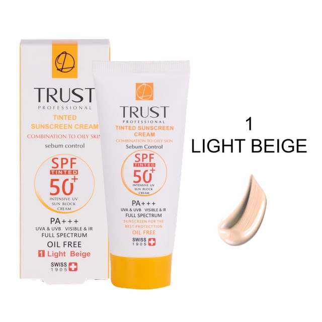 کرمهای ضدآفتاب رنگی تراست با SPF50+ از مرغوبترین و جدیدترین مواد اولیه موثره دارای حداکثر حفاظت دربرابر پرتوهای مضر خورشید ساخته شدهاند؛ این کرم با وجود بهرهمندی از بافتی سبک، دربرابر آسیبهای وارده توسط نور خورشید به خوبی از پوست محافظت و با مهار رادیکالهای آزاد از تخریب سلولهای پوستی جلوگیری میکند. همچنین با مصرف این محصول، بدون بسته شدن منافذ پوستی و ایجاد خلل در تنفس سلولهای پوستی، ضمن کنترل چربی، پوستتان آبرسانی میشود.