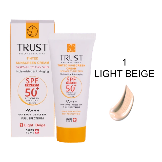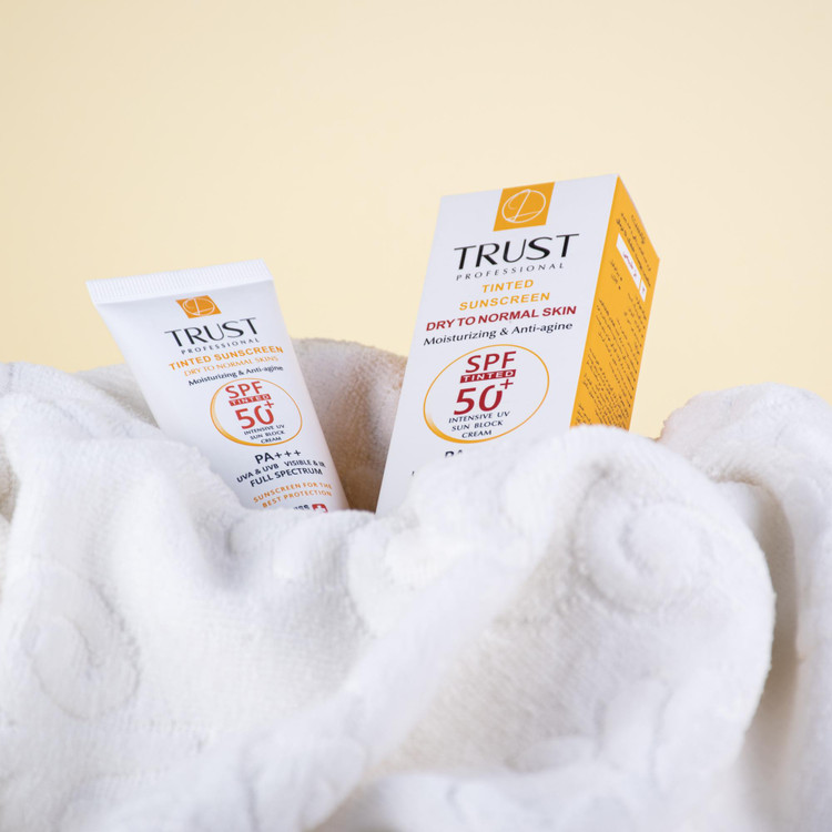 کرمهای ضدآفتاب رنگی تراست با SPF50+ از مرغوبترین و جدیدترین مواد اولیه موثره دارای حداکثر حفاظت دربرابر پرتوهای مضر خورشید ساخته شدهاند؛ این کرم با وجود بهرهمندی از بافتی سبک، دربرابر آسیبهای وارده توسط نور خورشید به خوبی از پوست محافظت و با مهار رادیکالهای آزاد از تخریب سلولهای پوستی جلوگیری میکند. همچنین با مصرف این محصول، بدون بسته شدن منافذ پوستی و ایجاد خلل در تنفس سلولهای پوستی، پوستتان آبرسانی میشود.