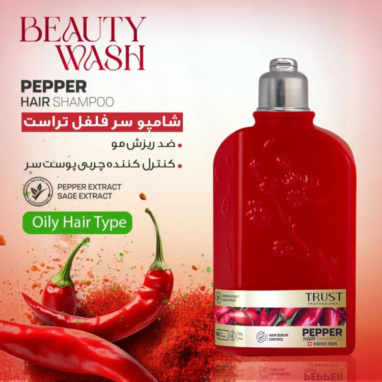 عصاره فلفل موجود در شامپو سر فلفل تراست، با تحریک فولیکولهای مو، به رشد بهتر مو و افزایش سلامت آن کمک میکند. علاوهبراین با افزایش گردش خون در پوست سر، از ریزش تارهای مو پیشگیری میکند. همچنین این محصول با داشتن عصاره مریمگلی در ترکیبات خود، ضمن کنترل چربی پوست، باعث براق شدن مو و رنگپذیری موهای خاکستری و بیرنگ میشود.