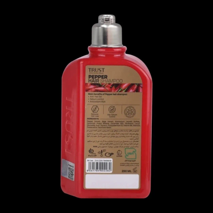 عصاره فلفل موجود در شامپو سر فلفل تراست، با تحریک فولیکولهای مو، به رشد بهتر مو و افزایش سلامت آن کمک میکند. علاوهبراین با افزایش گردش خون در پوست سر، از ریزش تارهای مو پیشگیری میکند. همچنین این محصول با داشتن عصاره مریمگلی در ترکیبات خود، ضمن کنترل چربی پوست، باعث براق شدن مو و رنگپذیری موهای خاکستری و بیرنگ میشود.