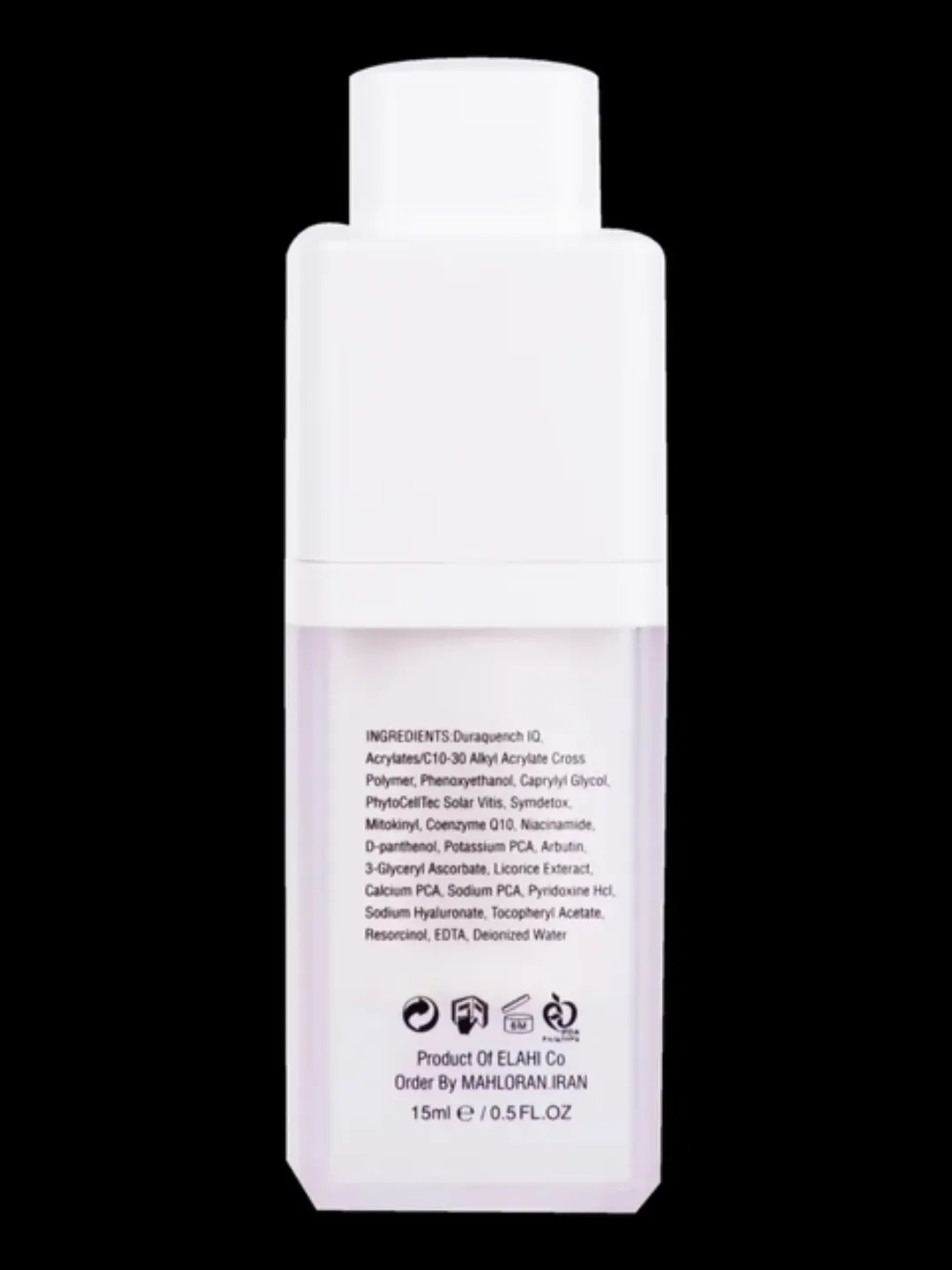 روشن کننده و برطرف کننده لک¬های پوستی با داشتن ترکیبات فعال رزورسینول، آربوتین، گلیسریل آسکوربات و عصاره شیرین بیان، و با دارا بودن ترکیبات آنتی¬اکسیدان عصاره سلول بنیادی دانه انگور، کوآنزیم کیوتن، نیاسین¬آمید، عصاره شیرین بیان و توکوفریل استات