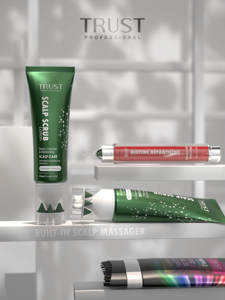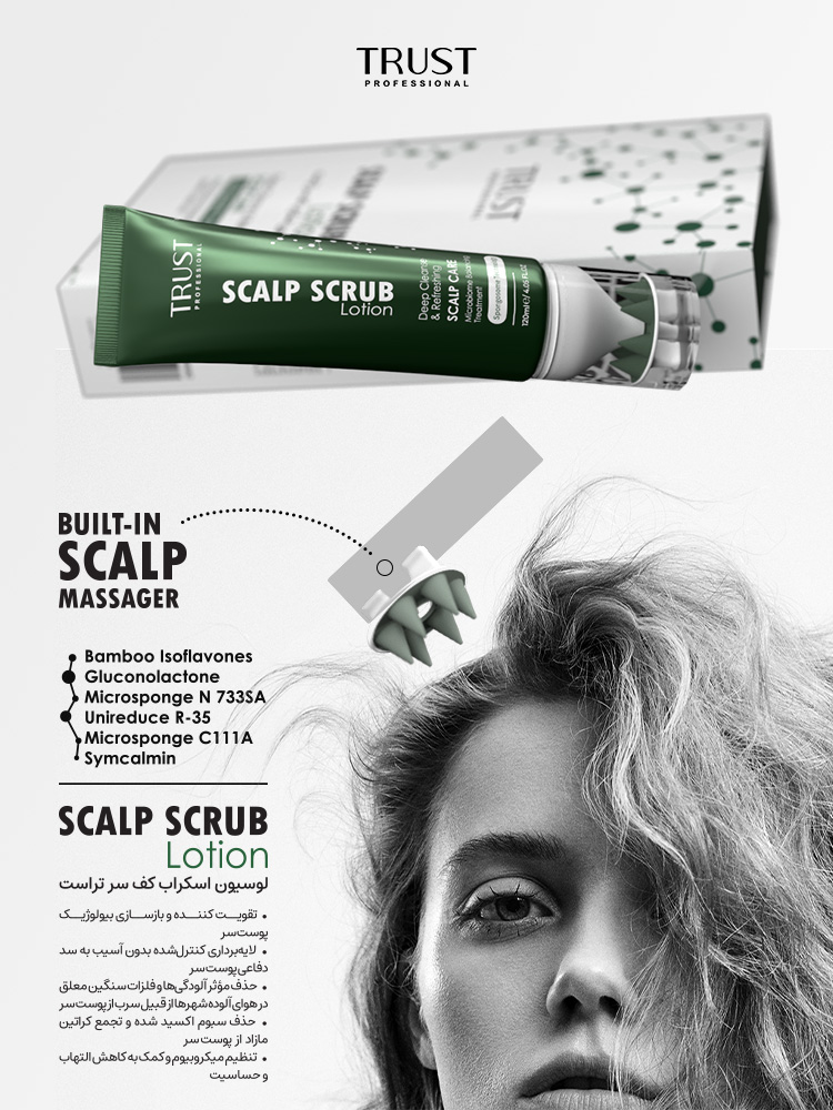 اختلال در میکروبیوم و تجمع سلول های مرده و آلودگی های محیطی روی پوست سر میتواند چرخه طبیعی نوسازی اپیدرم را مختل کرده و عملکرد فولیکول های مو را کاهش دهد. لوسیون اسکراب کف سر تراست یک سیستم پیشرفته لایه برداری و بازسازی بیولوژیک پوست سر و در عین حال تقویت کننده عالی پوست سر است که با ترکیب لایه بردارهای نسل جدید و فرآیندهای رهایش کنترل شده، پاکسازی عمیق را بدون ایجاد التهاب فراهم میکند. این فرمولاسیون با بهینهسازی اکسیژن رسانی و متابولیسم سلولی، پوست سر را در وضعیت ایده آل برای رشد سالم مو قرار میدهد.