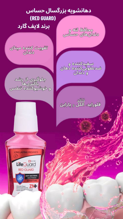 دهانشویه بزرگسال حساس (Red Guard) برند لایف گارد ۲۷۰ میل
