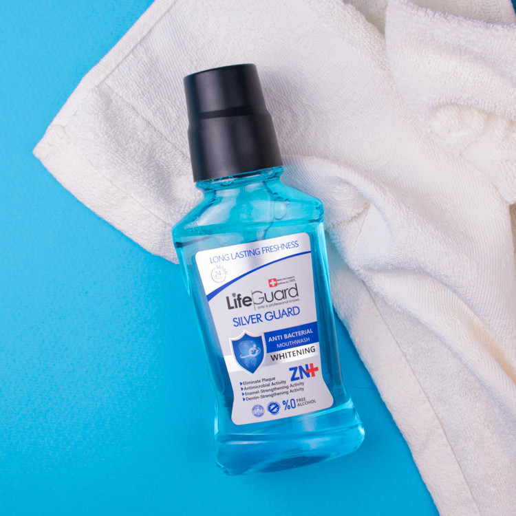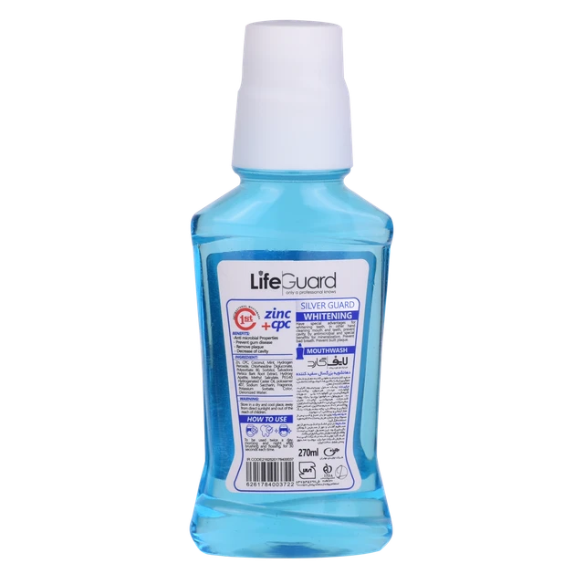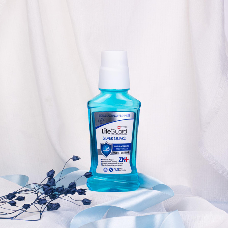 و در نهایت، مهمترین ویژگی دهانشویه بزرگسال (Silver Guard) برند لایف گارد، تأثیر بسزایی است که در سفیدکنندگی دندانها دارد. علاوه بر این ویژگی، به واسطه اکتیوهای خاص آنتی میکروبیال، در تمیز کردن حفره دهانی و پیشگیری از پوسیدگی دندانها نقش داشته و در استحکام دندانها بسیار تأثیرگذار است؛ این محصول، از بوی بد دهان پیشگیری کرده و جلوی تشکیل پلاک را نیز میگیرد. با این محصول، لبخندی درخشان را تجربه کنید، طعم خنکی و تازگی را بچشید و از سلامت حفره دهانیتان اطمینان حاصل کنید.