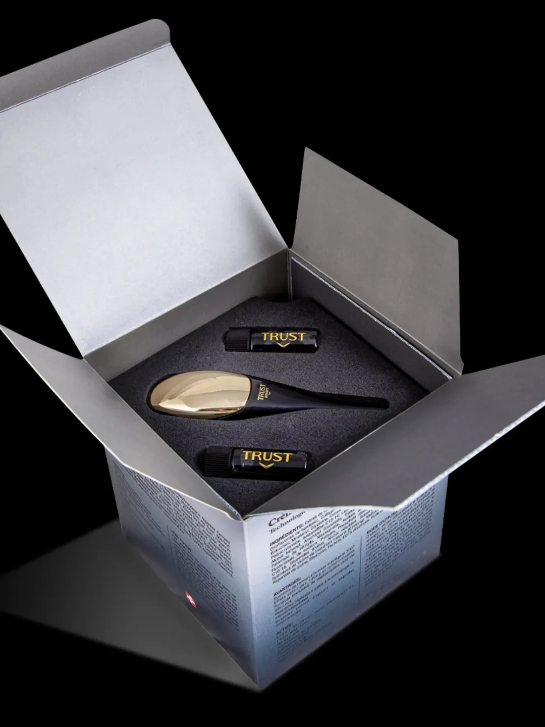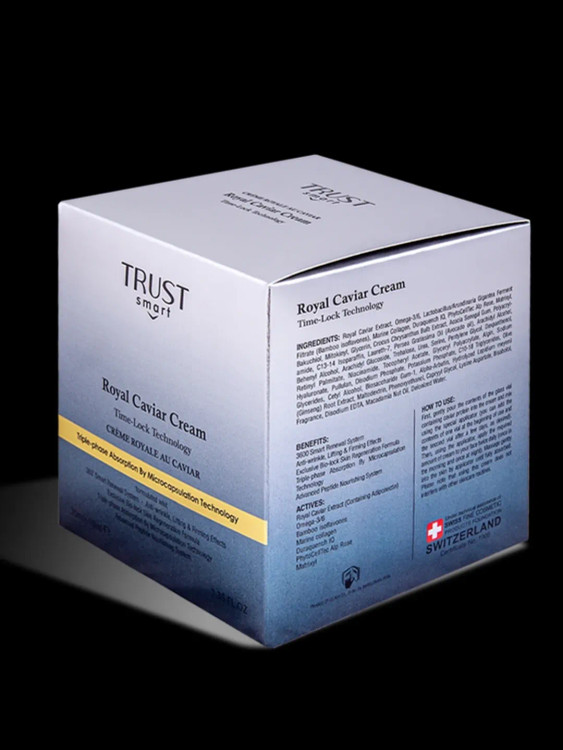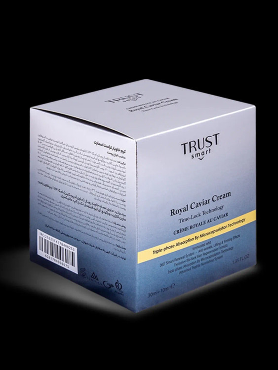 ü رطوبترسانی عمیق و تغذیه پوست با داشتن ترکیبات پپتیدی: اسیدهای چرب امگا-3 و امگا-6 موجود در خاویار و ترکیبات آبرسان و پروتئینی موجود در کرم خاویار تراست با بهرهگیری از تکنولوژی انحصاری بایولاک، رطوبت پوست را متعادل کرده و با کمک به ترمیم آسیبهای پوستی، از خشکی و ایجاد چین و چروک در پوست جلوگیری میکنند.