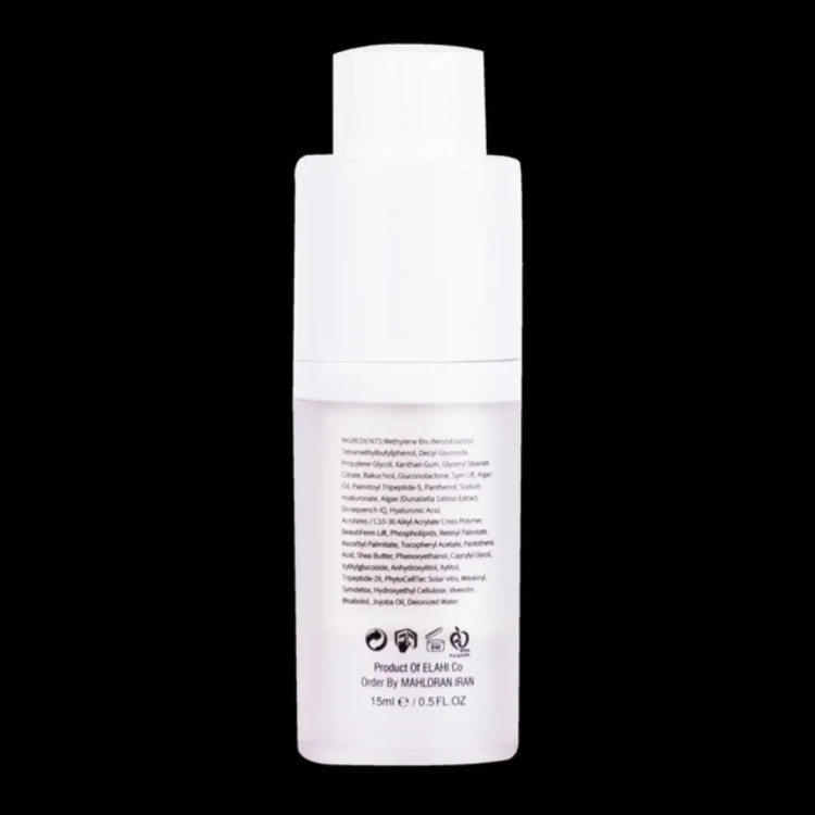 مهار رادیکالهای آزاد و رفع چین و چروکهای سطحی دور چشم با داشتن ترکیبات آنتیاکسیدانی قوی مثل باکوکیول، روغن آرگان، عصاره جلبک، آسکوربیلپالمیتات، عصاره سلول بنیادی دانه انگور، میتوکینیل، سیمدتوکس و توکوفریلاستات