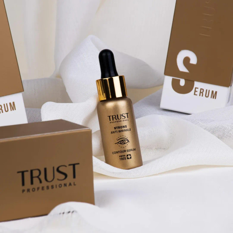 در سرم ضدچروک دورچشم تراست، هیالورونیک اسید، کوآنزیم کیوتن و کمپلکس سرامید، بهصورت همافزا با هم، باعث افزایش آبرسانی در پوست شده و کلاژنهای موجود در پوست را تحریک میکنند.