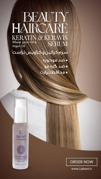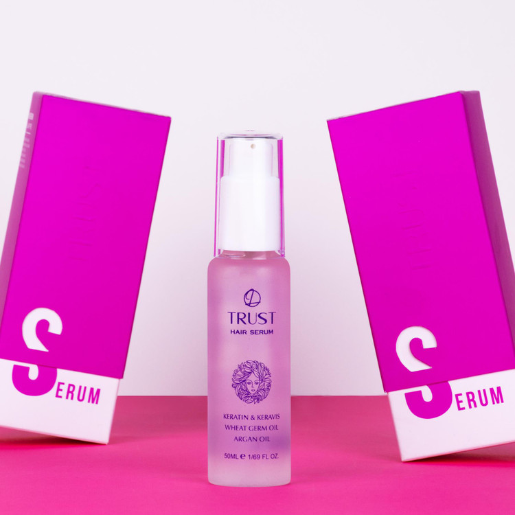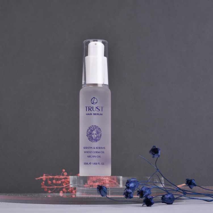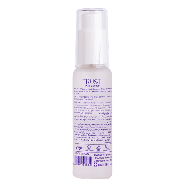 موادموثره در سرم موی تراست، روغن آرگان، کراتین، روغن بادام و جوانه گندم است.