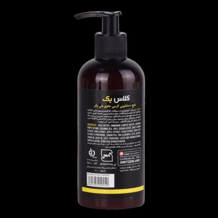 مایع دستشویی کرمی کلاس یک حاوی عصاره شی باتر، علاوه بر پاکسازی پوست از آلودگیها، آن را بهخوبی نرم کرده و آبرسانی میکند. شی باتر موجود در این محصول با داشتن اسیدهای چرب ضروری، سد طبیعی پوست را نیز تقویت می کند.