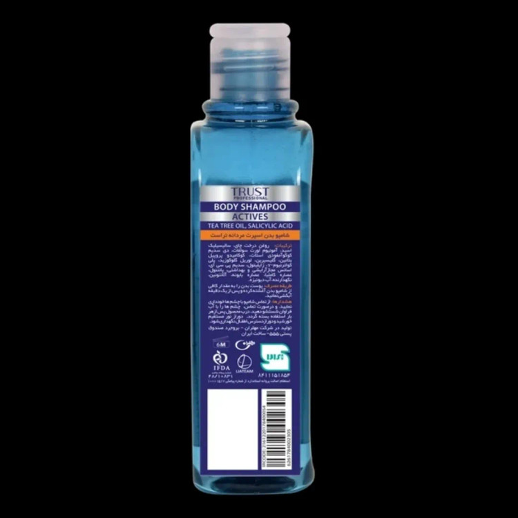 شامپو بدن اسپرت مردانه تراست، حاوی منتول و زینک PCA در ساختار خود بوده و با کنترل میزان تعریق بدن، از تکثیر باکتریها روی پوست جلوگیری کرده و حس خنکی و طراوت به آن میبخشد. این محصول گزینه مناسبی برای استحمام بعد از ورزش است.